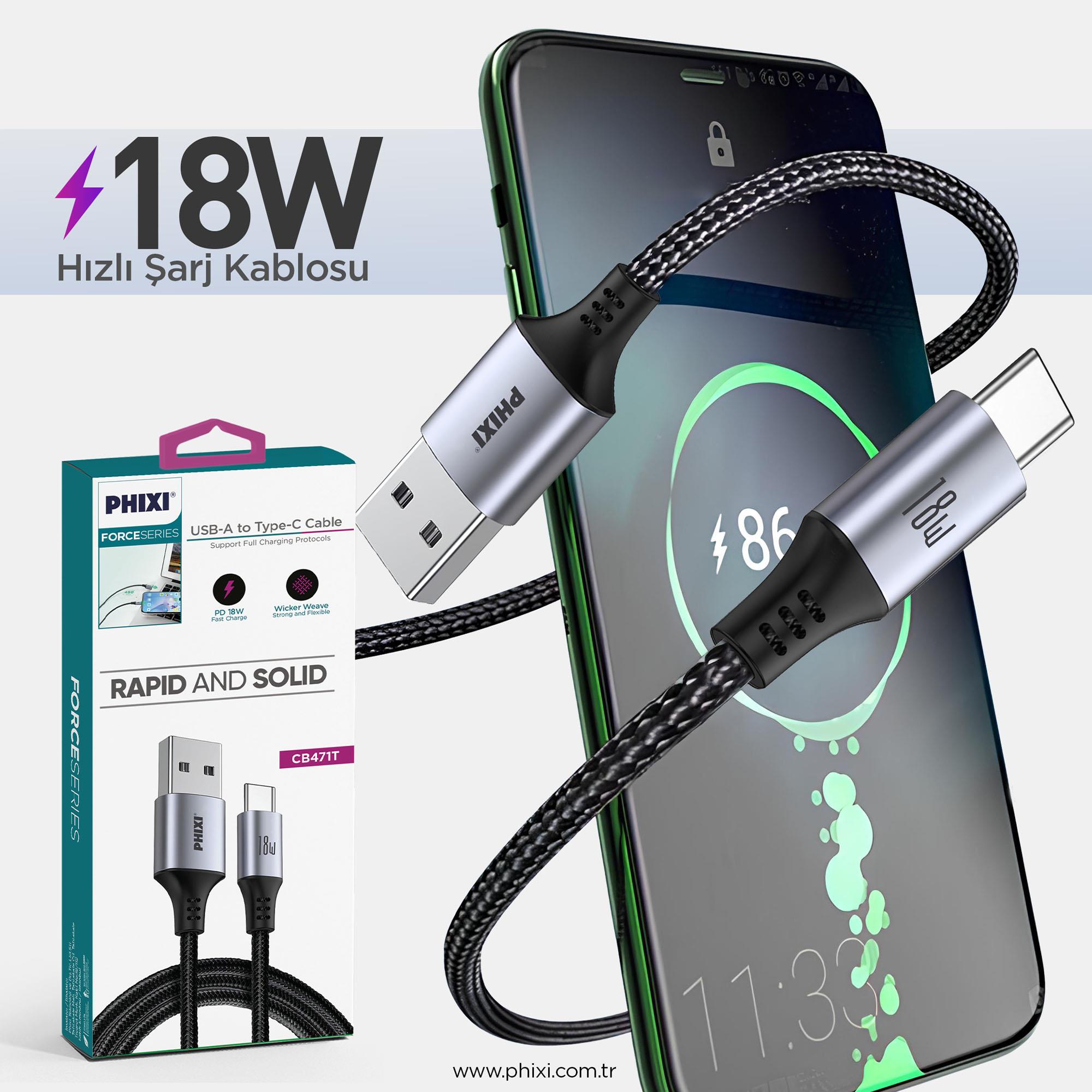 Force Serisi CB471T USB-A to Type-C Hasır Siyah Kablo, yüksek kalite ve dayanıklılığı bir araya getiren profesyonel bir şarj ve veri aktarım çözümüdür. Geliştirilmiş 18W hızlı şarj gücü, hasır örgü kaplama ve metal uç tasarımı ile bu model, hem bireysel kullanıcıların hem de toptan satış yapan firmaların beklentilerini karşılamak üzere üretilmiştir.