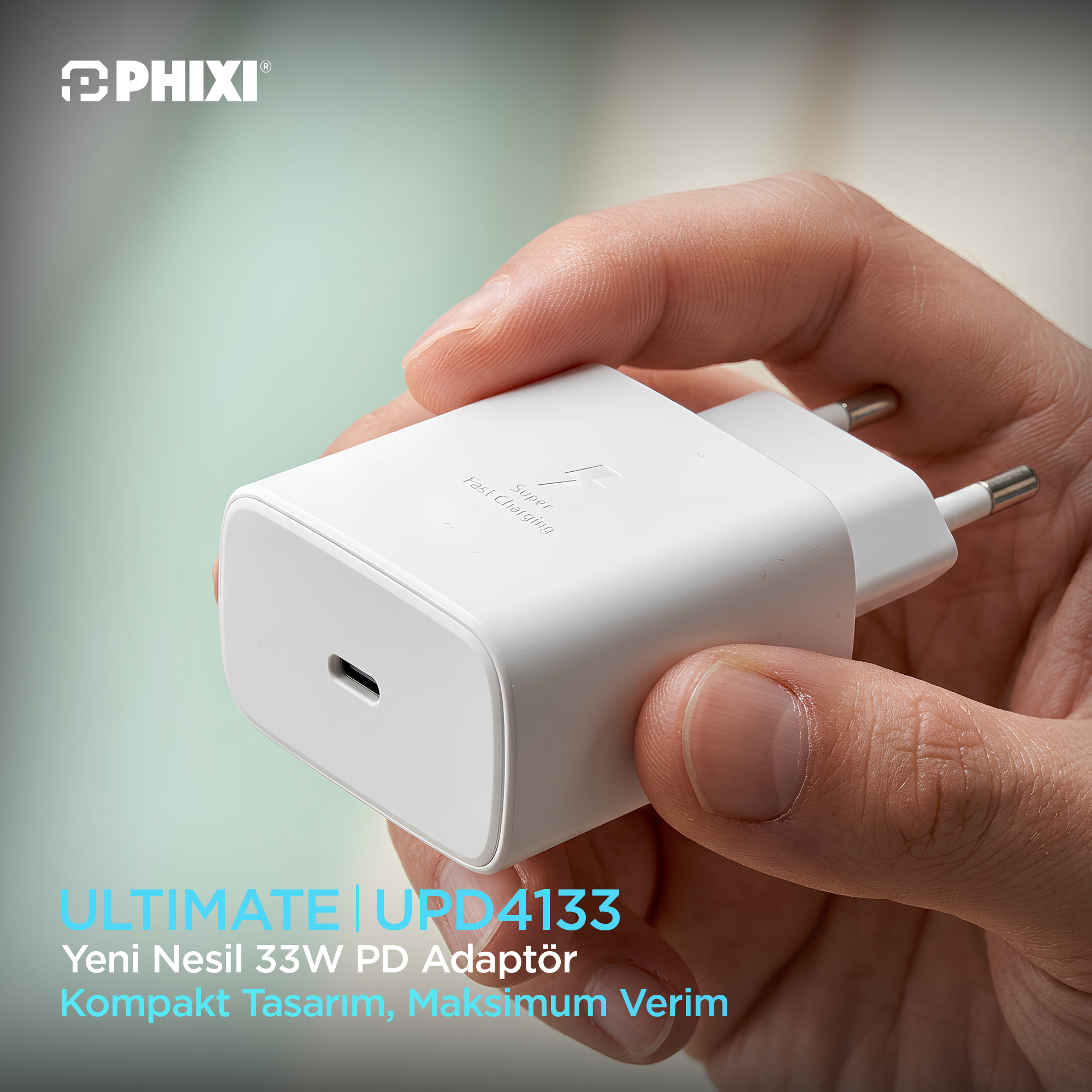 PHIXI 33W PD adaptör Power Delivery teknolojisi ile cihazlarınızı hızlı ve verimli şekilde şarj eder.
