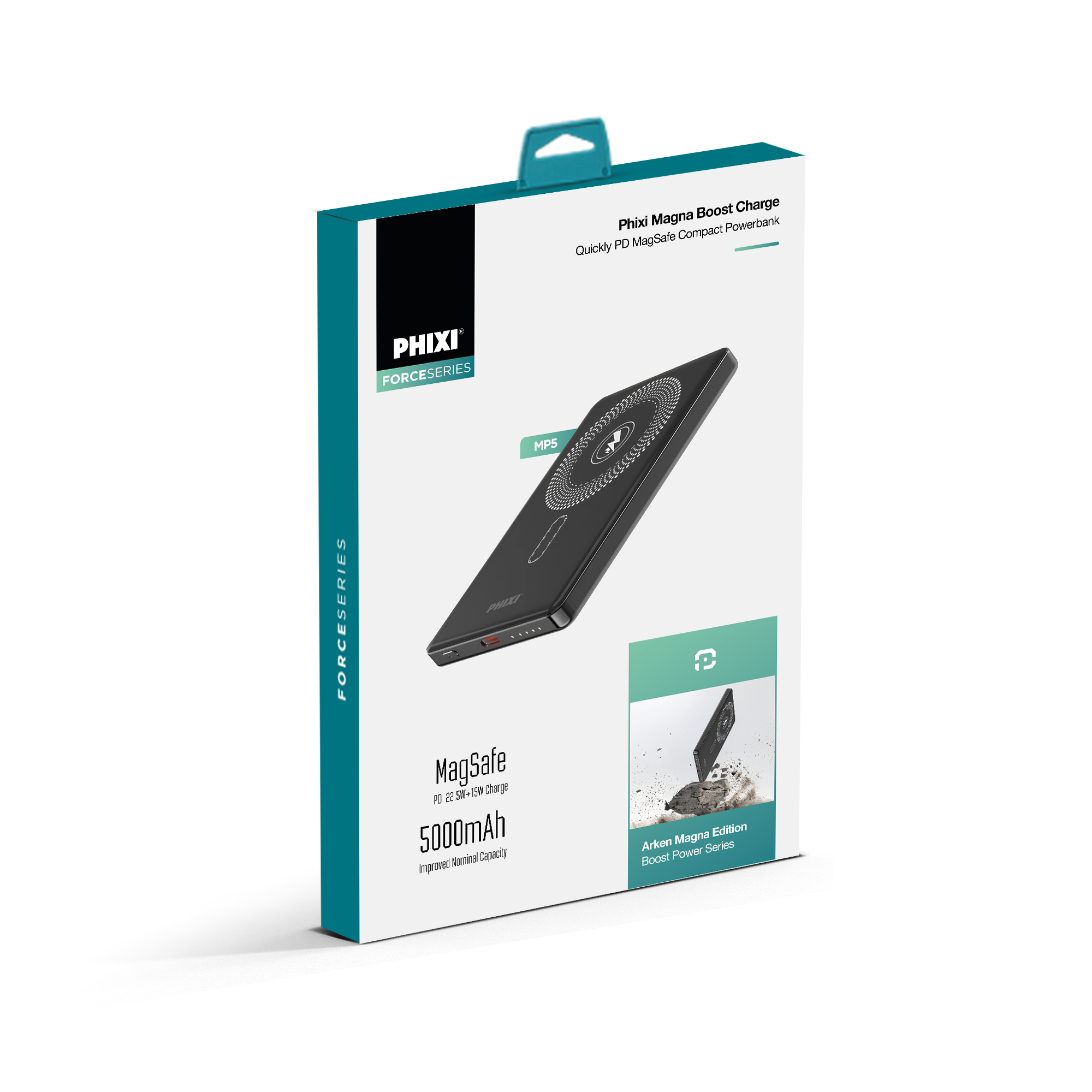PHIXI Force MP5 MagSafe Powerbank, ultra ince tasarımı ve manyetik şarj teknolojisi ile mobil şarj deneyimini pratik ve hızlı hale getirir. 5000mAh kapasitesi ve 22.5W hızlı şarj desteği sayesinde gün içinde cihazlarınızı kolayca şarj edebilirsiniz.